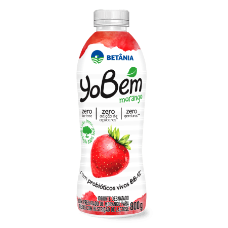 -Ingredientes: Leite desnatado e/ou leite em pó desnatado reconstituído, concentrado proteico de leite, concentrado proteico de soro de leite, preparado de morango (água, morango, amido, corante carmim, conservante sorbato de potássio, estabilizante pectina, acidulante ácido cítrico, aromatizante, edulcorantes sucralose e acessulfame de potássio), amido modificado, fermento lácteo, enzima lactase, aromatizantes, estabilizante pectina, corante carmim e edulcorante sucralose.