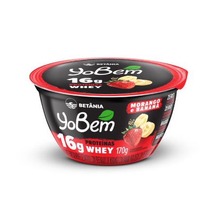 -Leite desnatado e/ou leite em pó desnatado reconstituído, concentrado proteico de leite, preparado de morango com banana (água, morango, polpa de banana, amido modificado, corante carmim, aromatizantes, edulcorante sucralose, espessante goma xantana, conservante sorbato de potássio e acidulante ácido cítrico), concentrado proteico de soro de leite, amido modificado, fermentos lácteos, enzima lactase, aromatizante e estabilizante pectina.